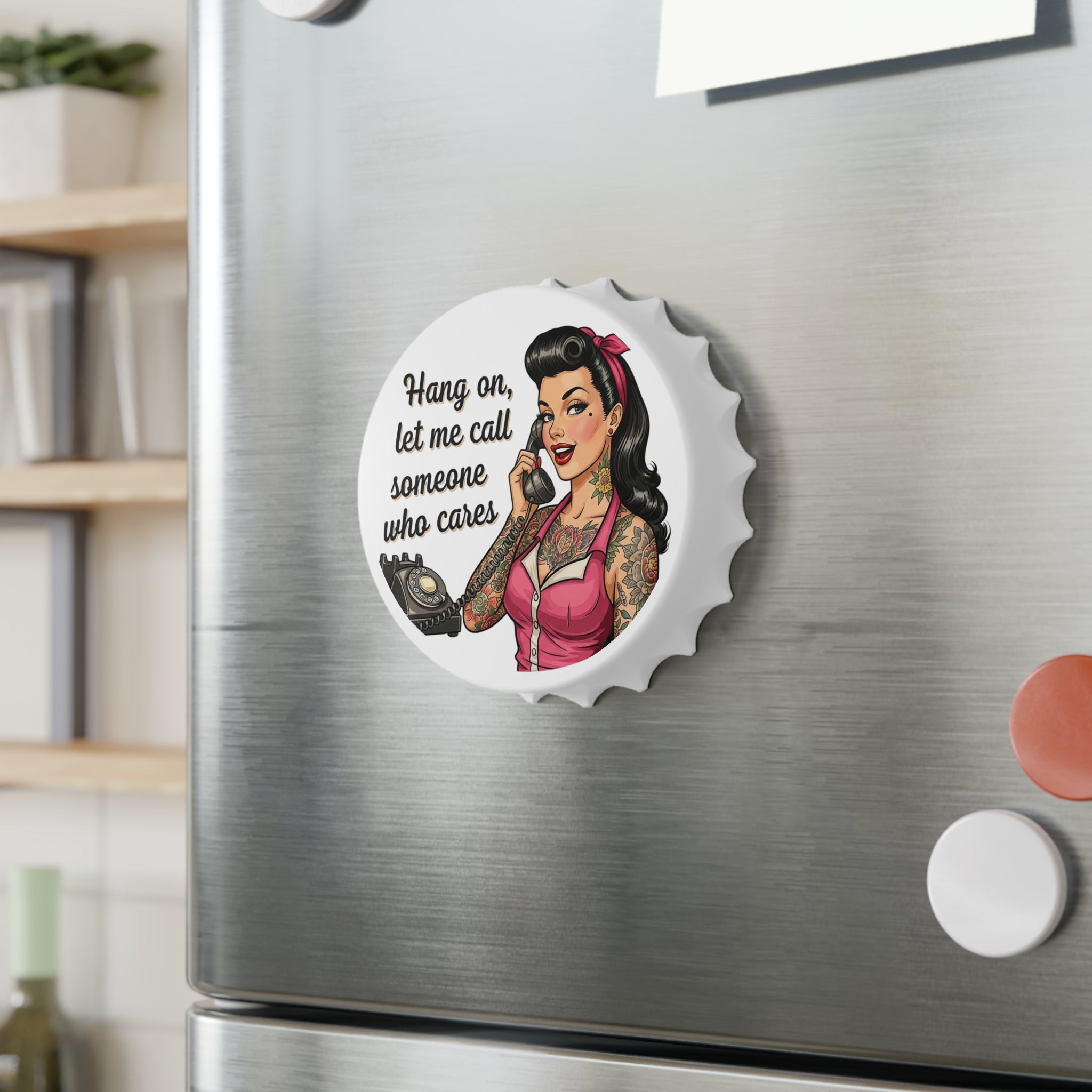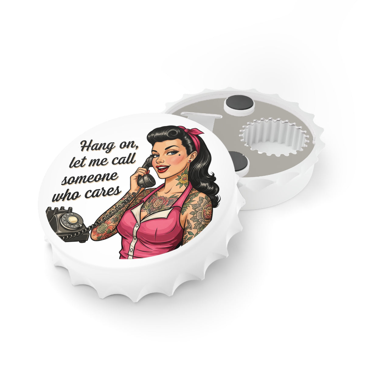 Vintage Pin-Up Tattoo Bottle Opener – "Hang on, let me call someone who cares"