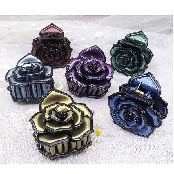 - This elegant 12-pack of deep color rose hair claws offers a sophisticated and secure way to style your hair for any occasion.