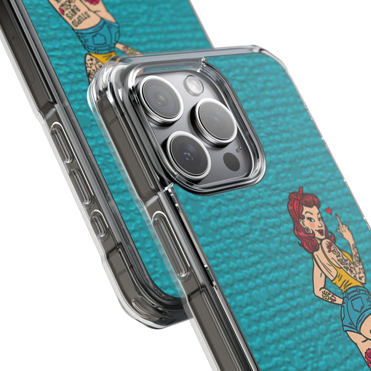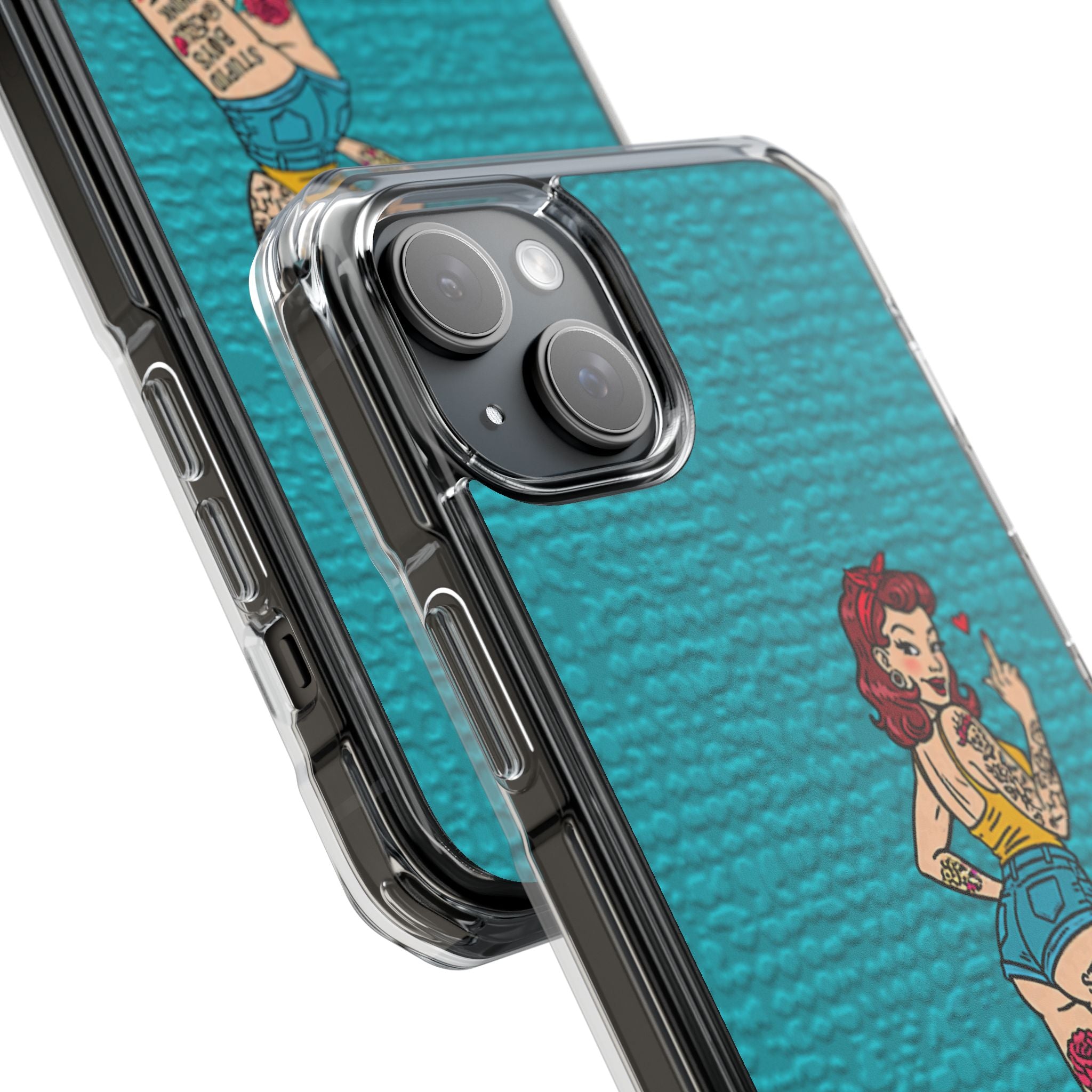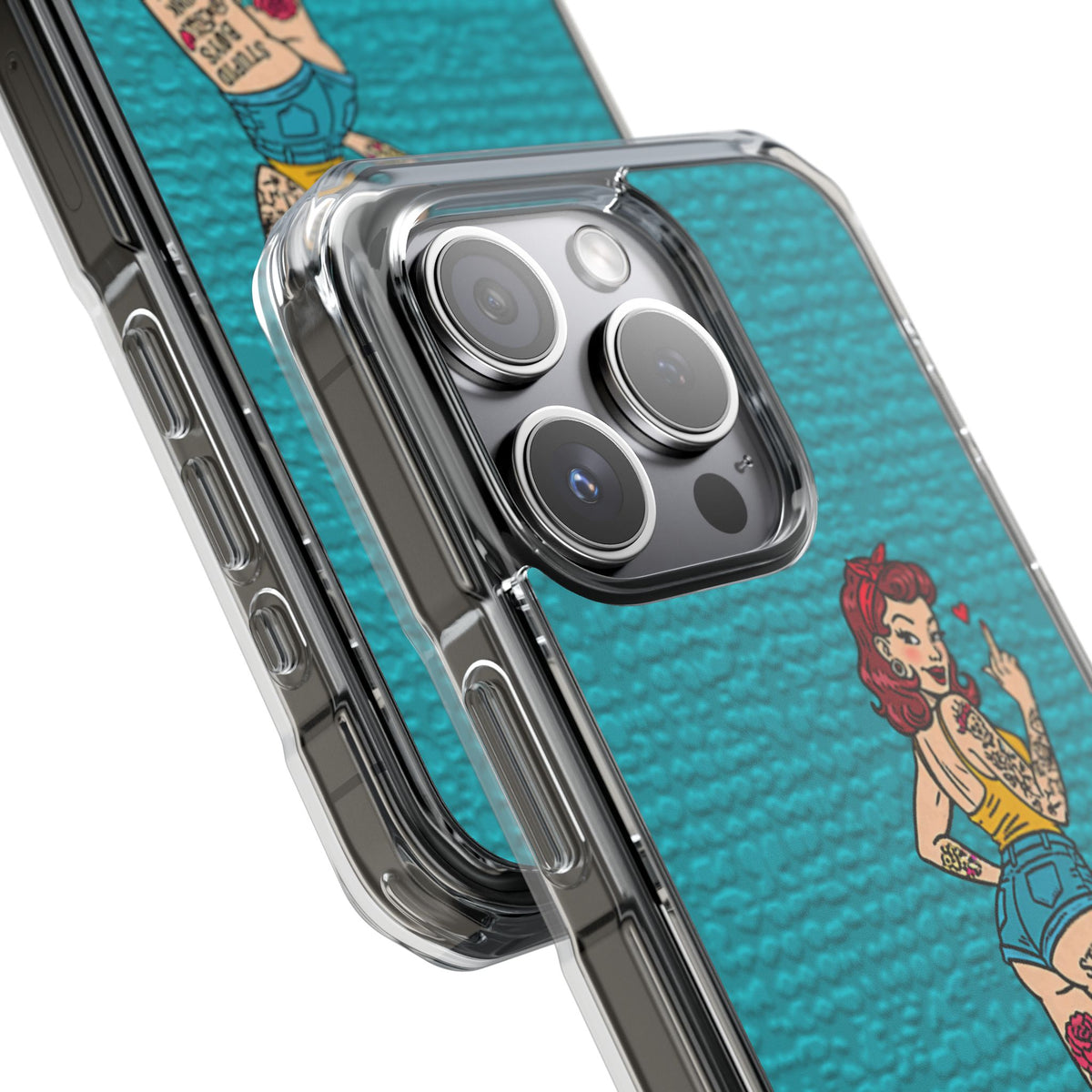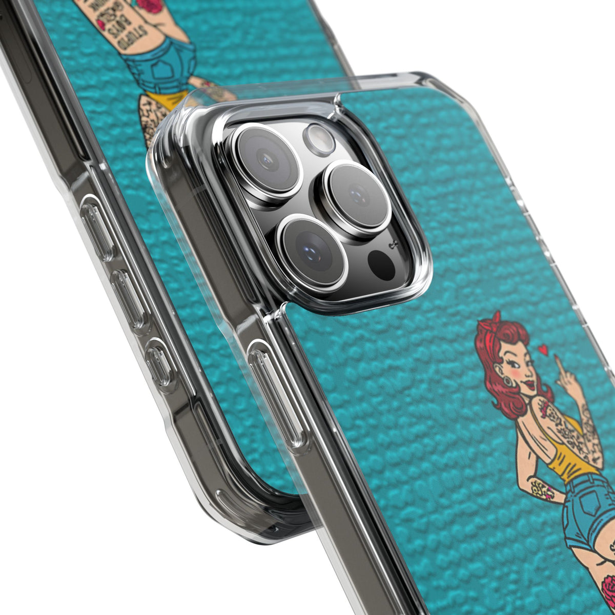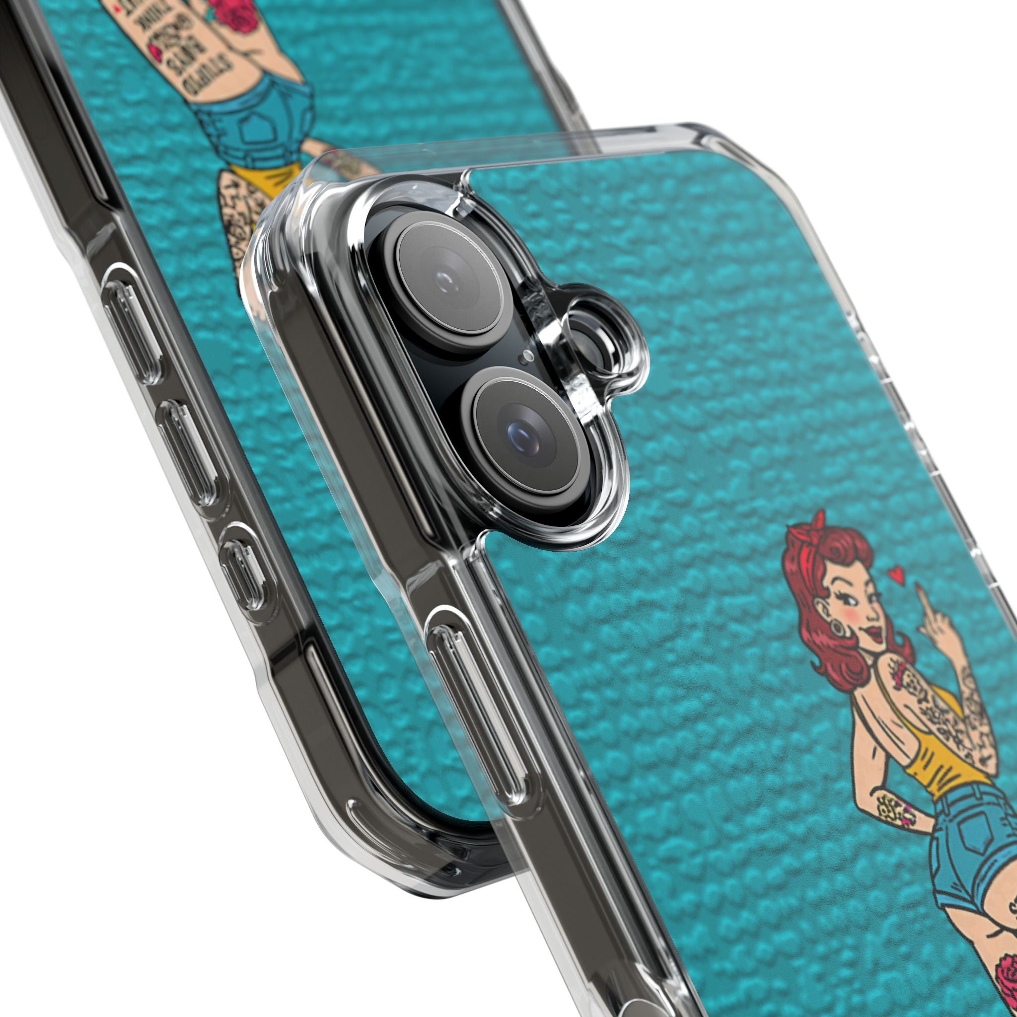 Make a bold statement with our Sassy Pin-Up Clear Phone Case—where attitude meets protection. This striking case showcases eye-catching artwork that demands attention, letting your phone reflect your fearless personality. Built with impact-resistant clarity, it shields your device without sacrificing the stunning design underneath. Perfect for those who refuse to blend in, whether you're turning heads at a night out or navigating your day with confidence. Celebrate your individuality with a case that's as daring as you are.