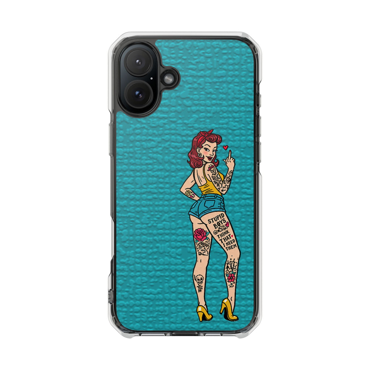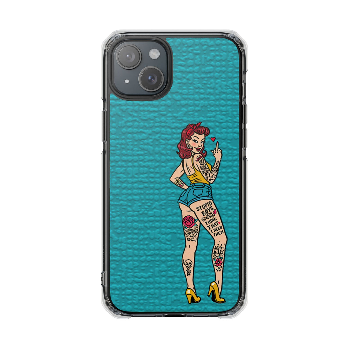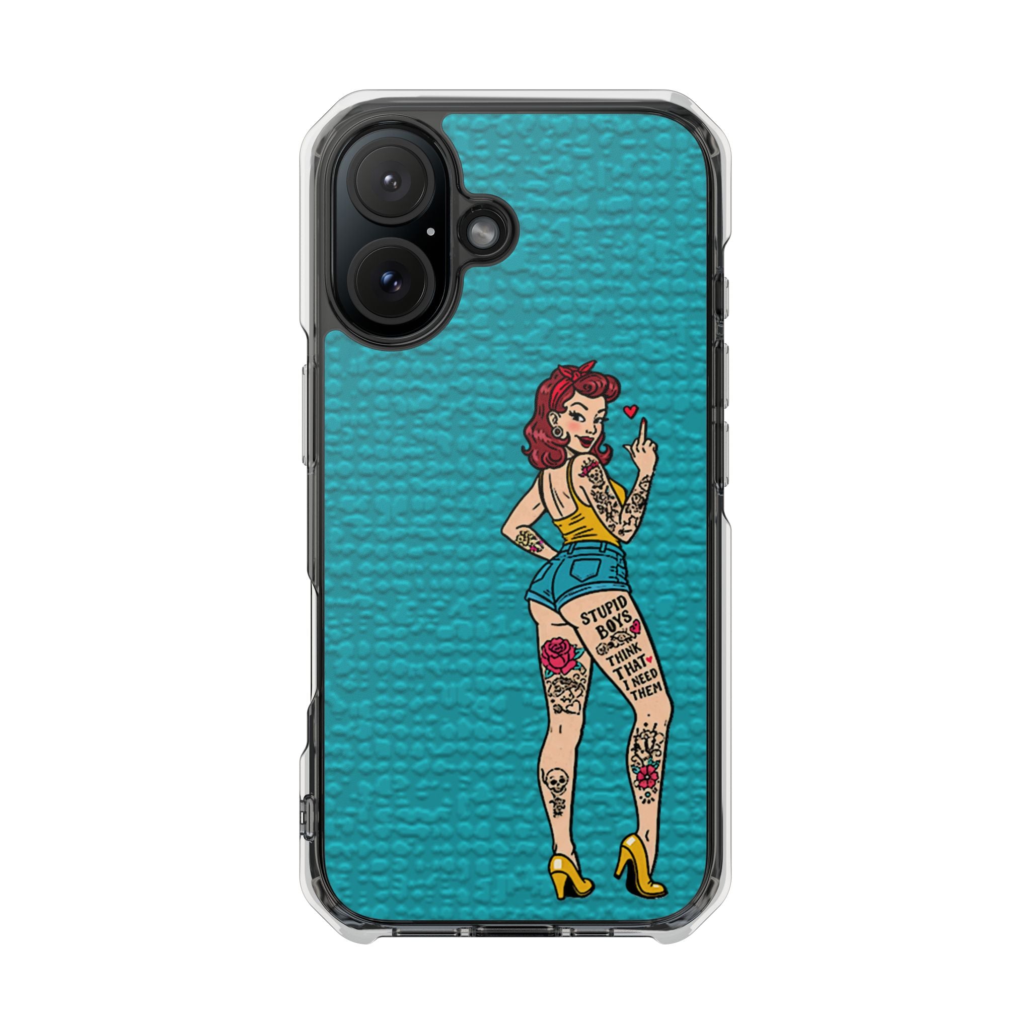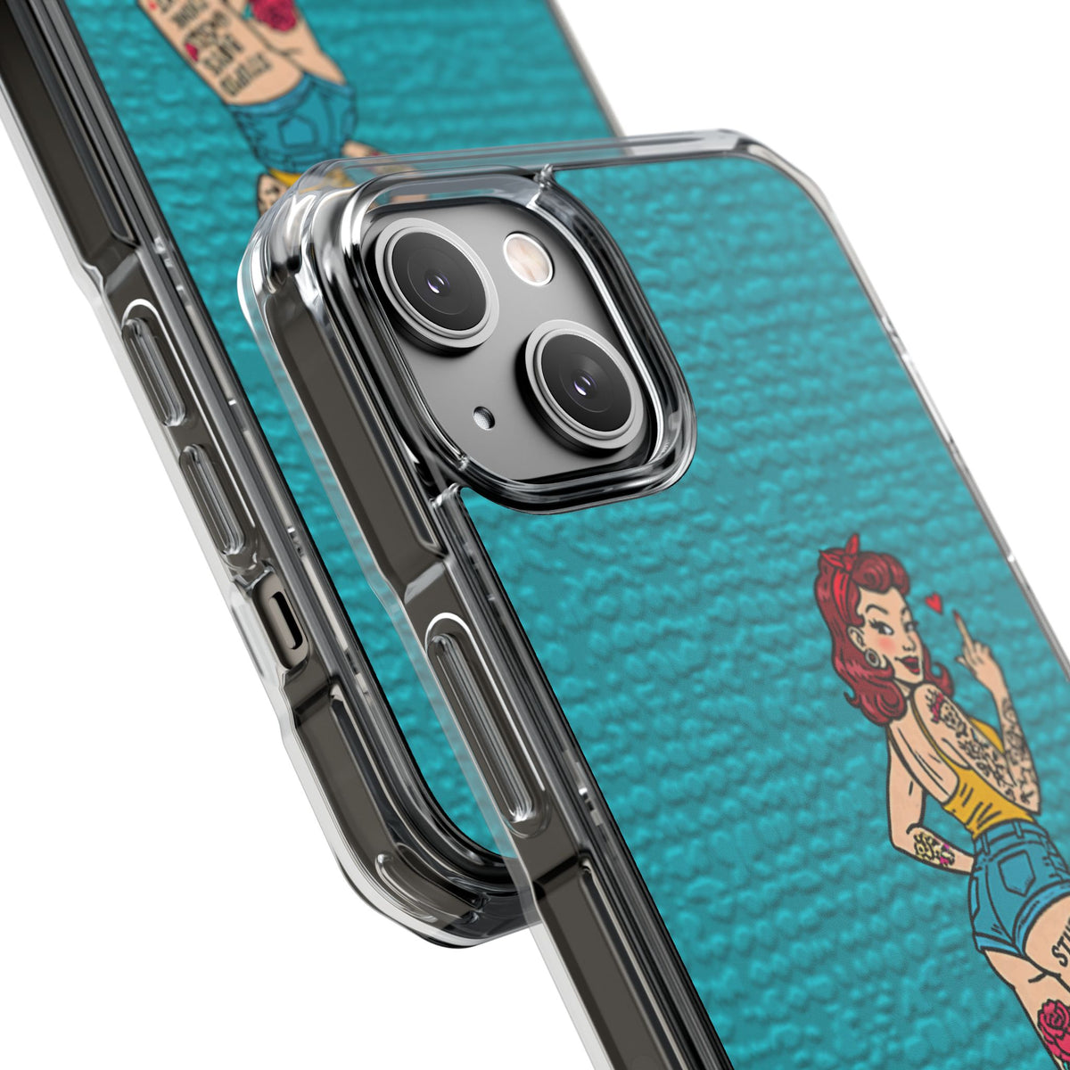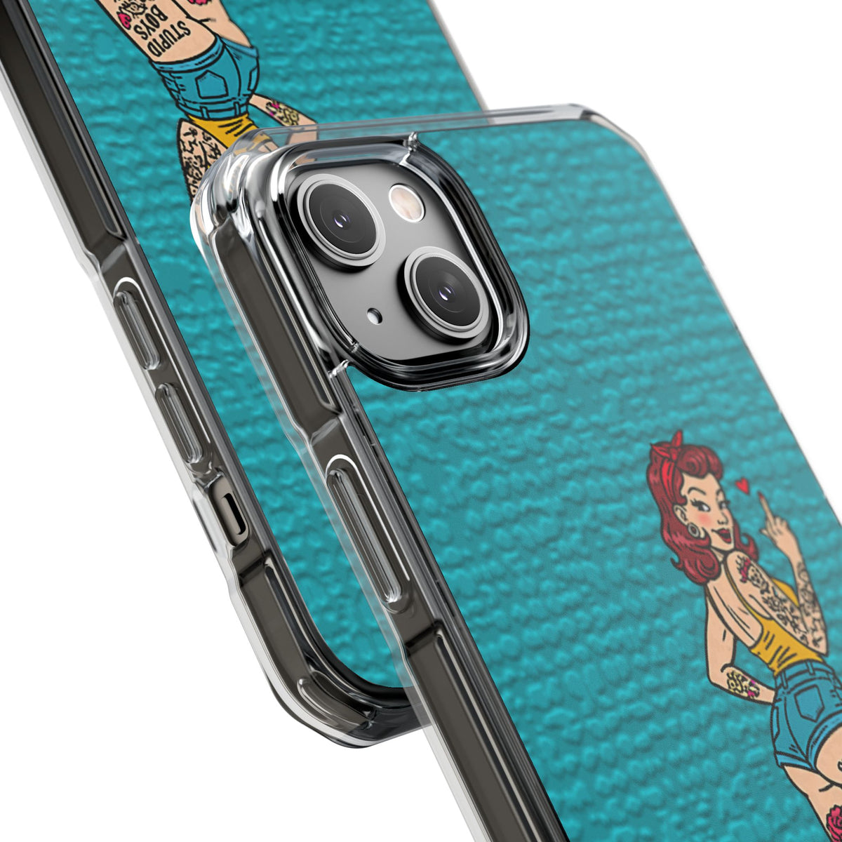 Make a bold statement with our Sassy Pin-Up Clear Phone Case—where attitude meets protection. This striking case showcases eye-catching artwork that demands attention, letting your phone reflect your fearless personality. Built with impact-resistant clarity, it shields your device without sacrificing the stunning design underneath. Perfect for those who refuse to blend in, whether you're turning heads at a night out or navigating your day with confidence. Celebrate your individuality with a case that's as daring as you are.