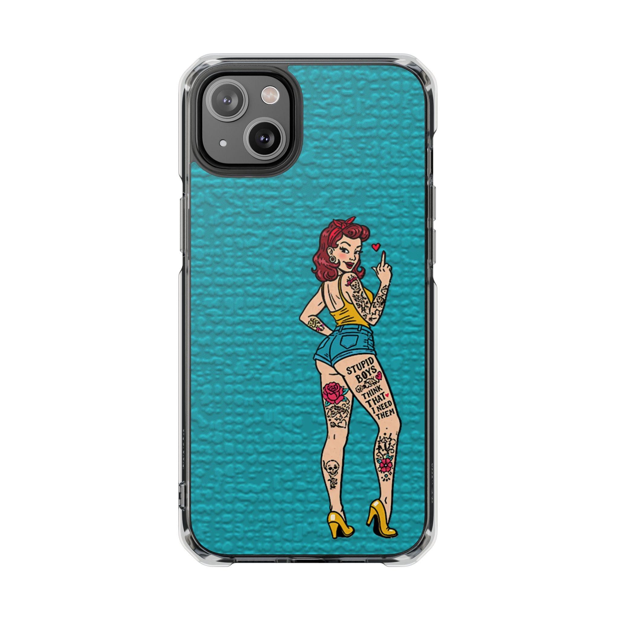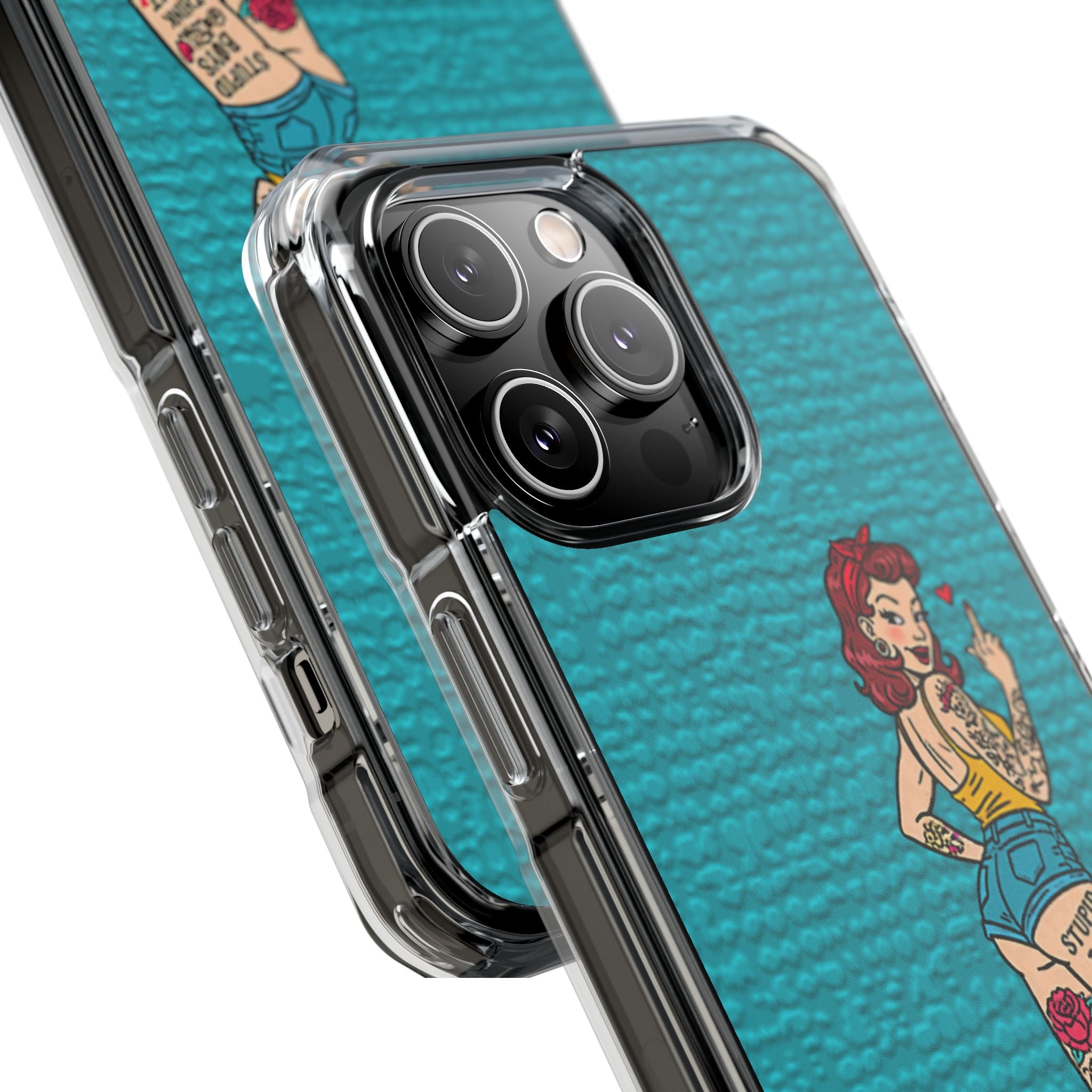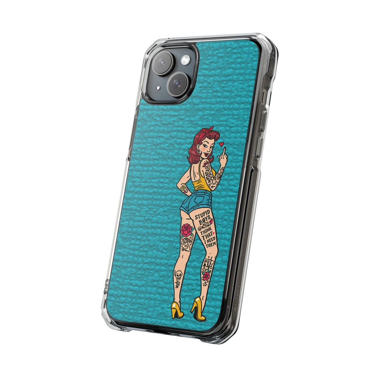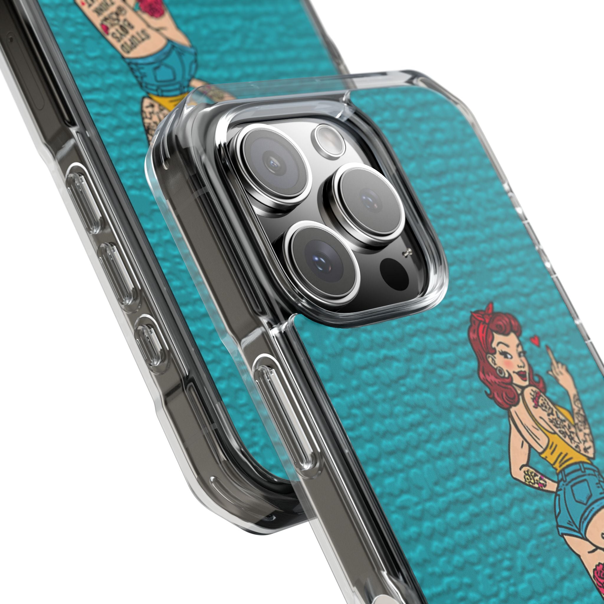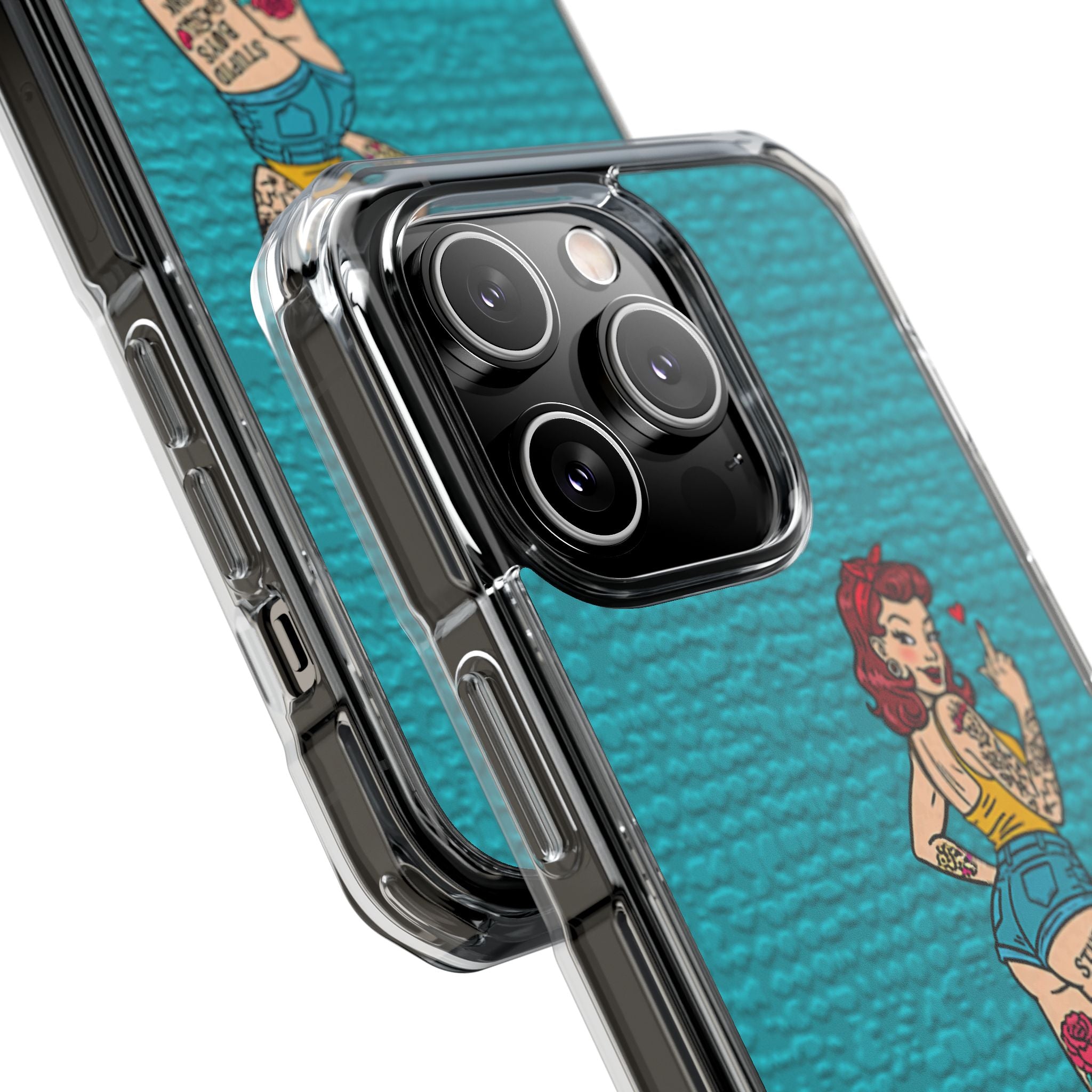 Make a bold statement with our Sassy Pin-Up Clear Phone Case—where attitude meets protection. This striking case showcases eye-catching artwork that demands attention, letting your phone reflect your fearless personality. Built with impact-resistant clarity, it shields your device without sacrificing the stunning design underneath. Perfect for those who refuse to blend in, whether you're turning heads at a night out or navigating your day with confidence. Celebrate your individuality with a case that's as daring as you are.