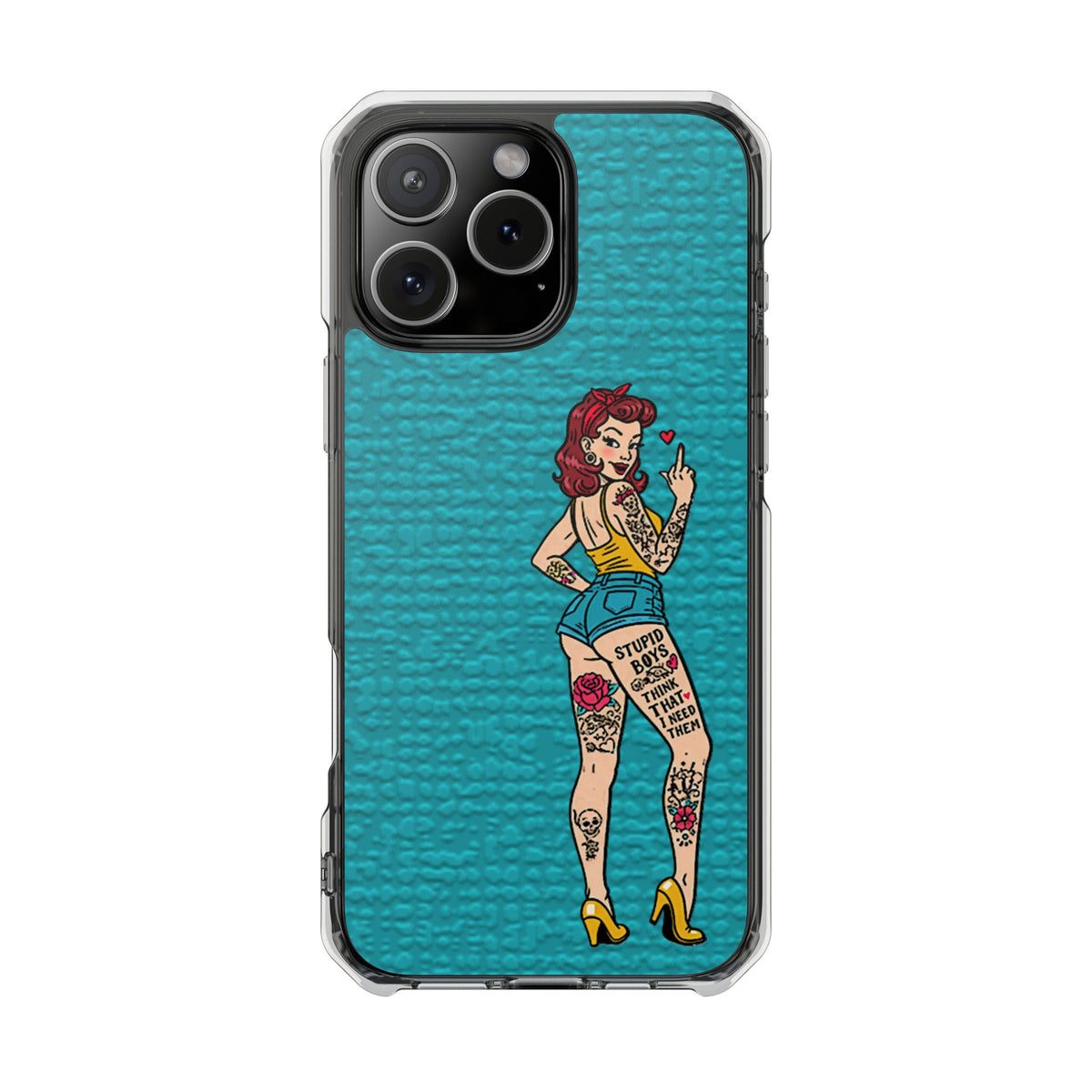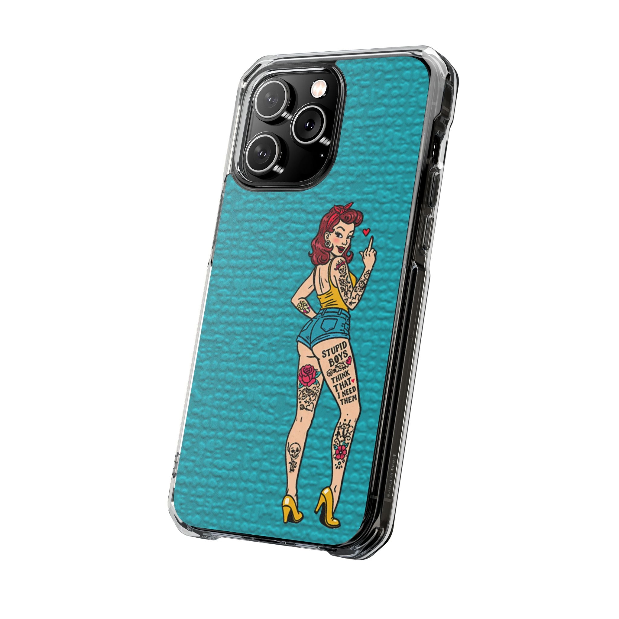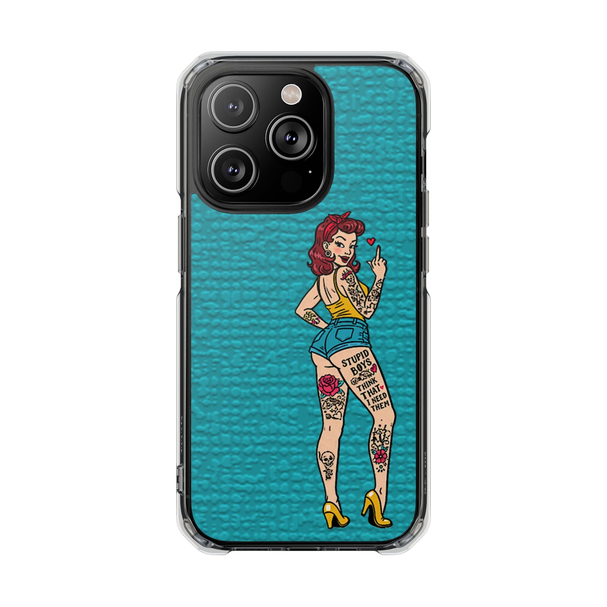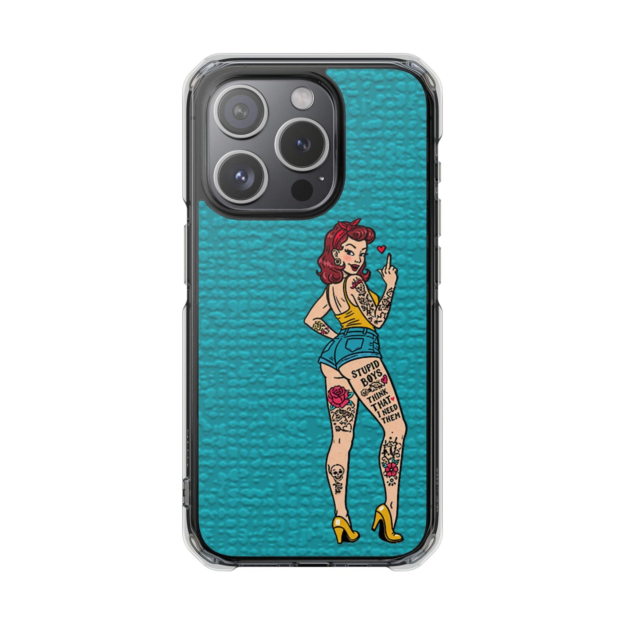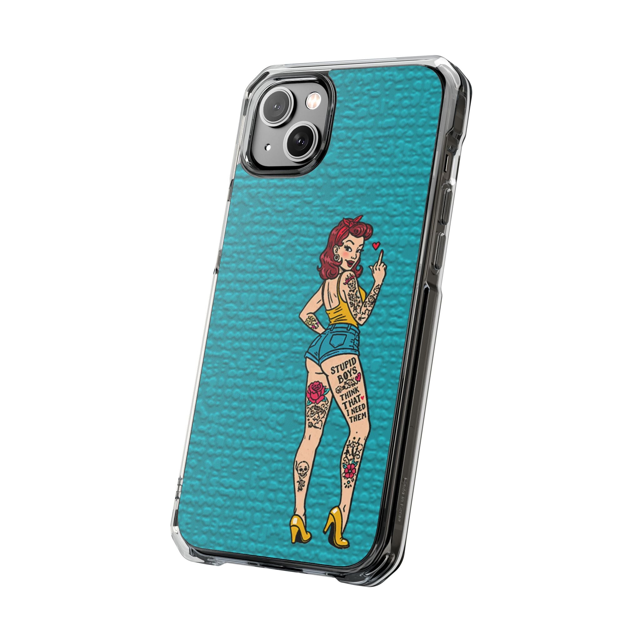Make a bold statement with our Sassy Pin-Up Clear Phone Case—where attitude meets protection. This striking case showcases eye-catching artwork that demands attention, letting your phone reflect your fearless personality. Built with impact-resistant clarity, it shields your device without sacrificing the stunning design underneath. Perfect for those who refuse to blend in, whether you're turning heads at a night out or navigating your day with confidence. Celebrate your individuality with a case that's as daring as you are.