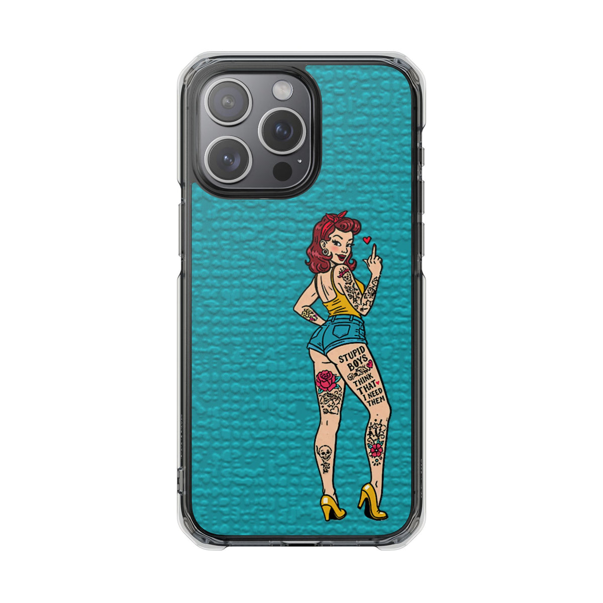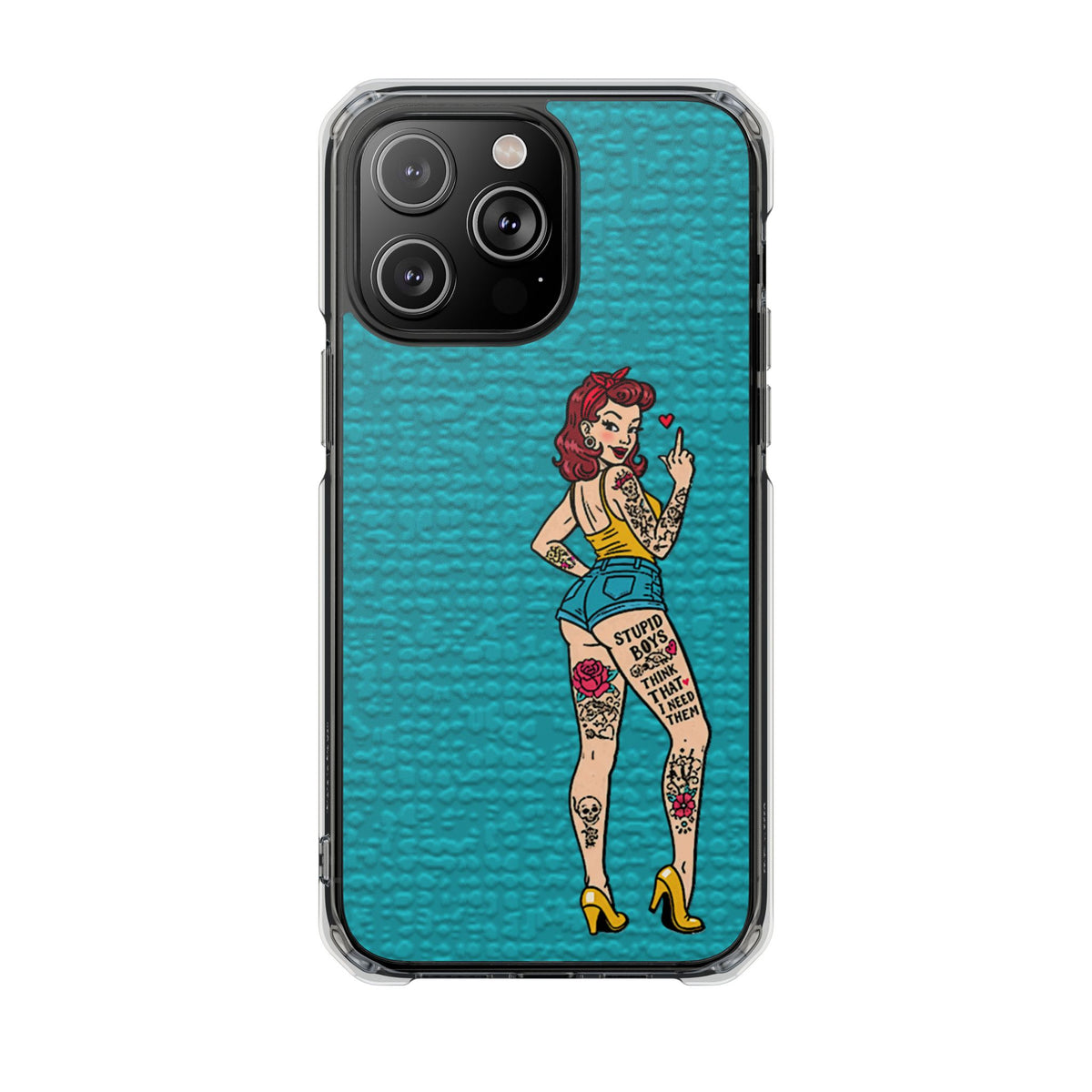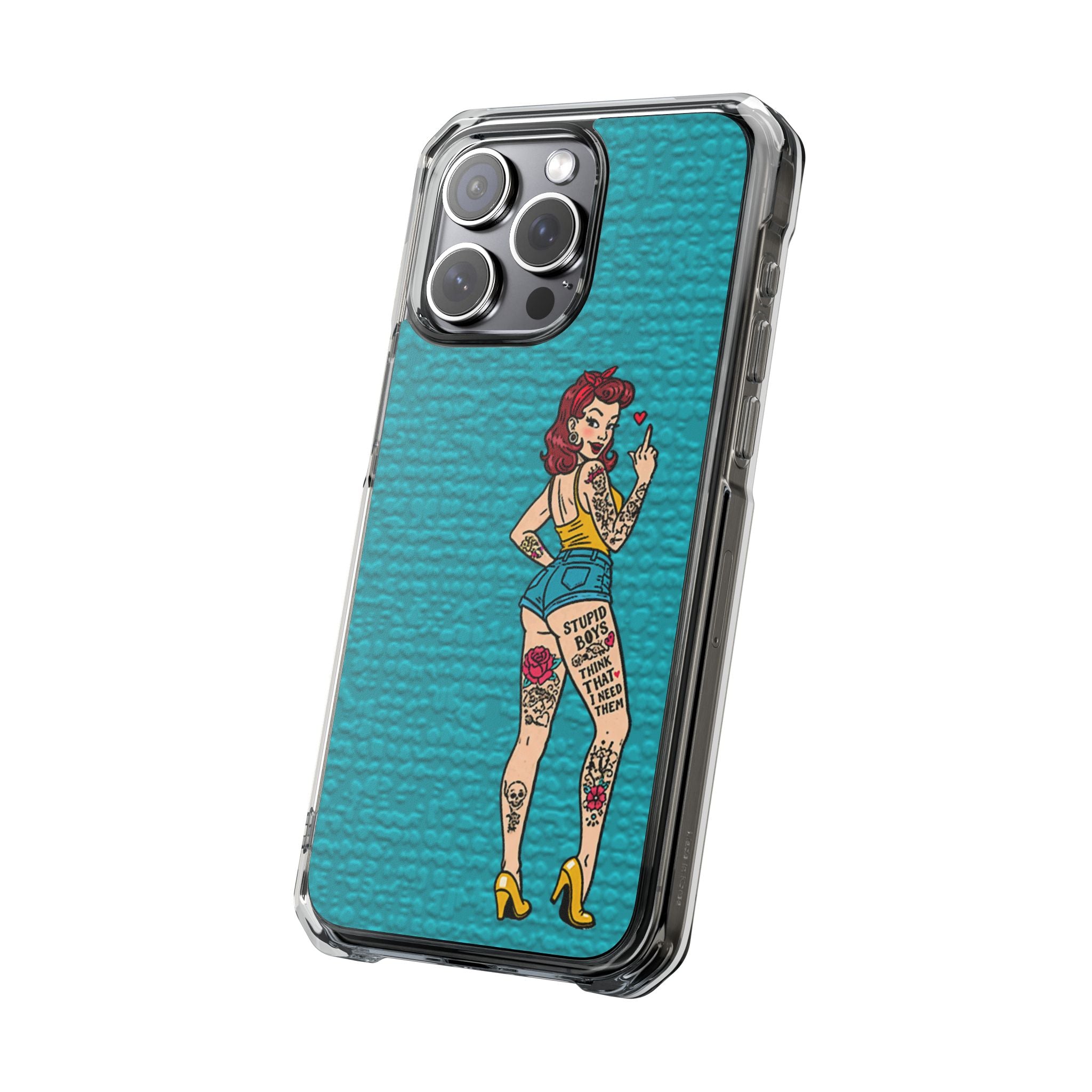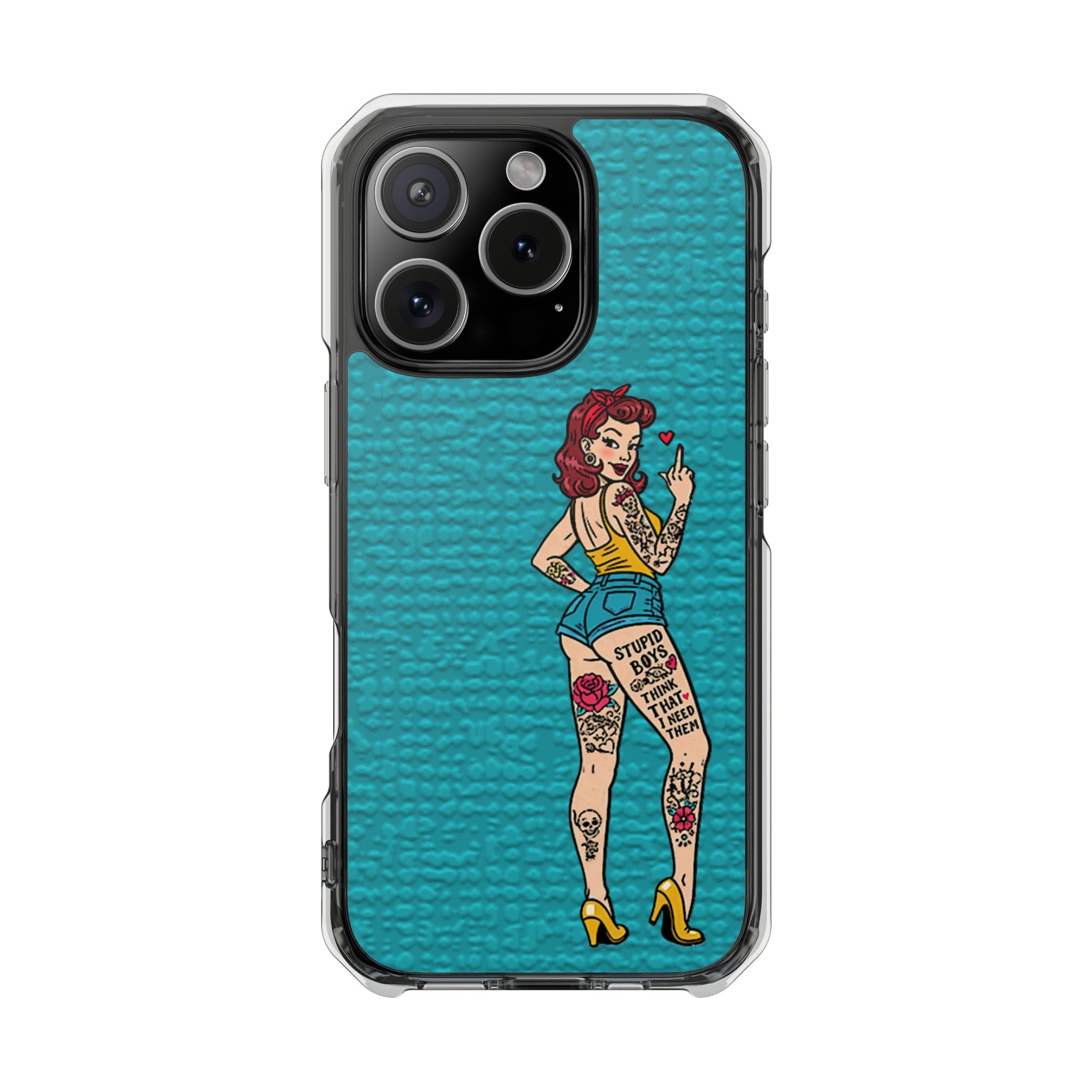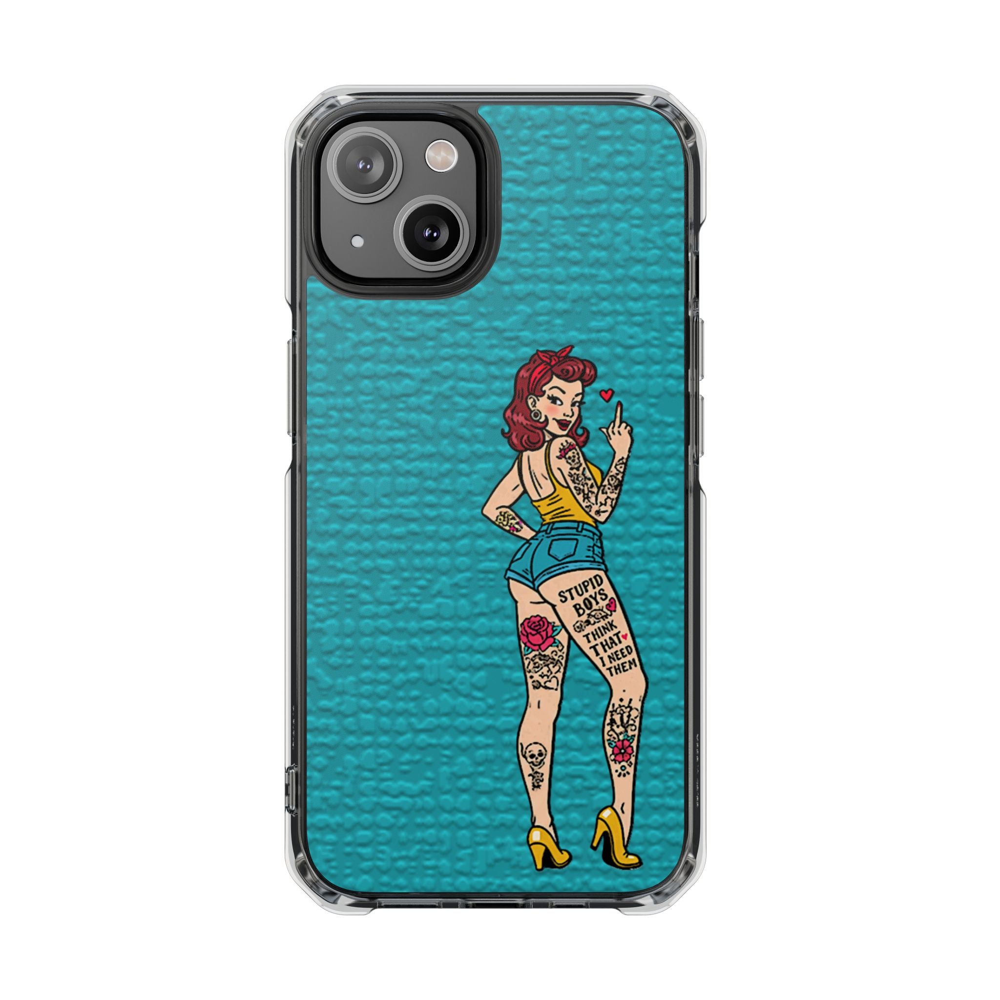 Make a bold statement with our Sassy Pin-Up Clear Phone Case—where attitude meets protection. This striking case showcases eye-catching artwork that demands attention, letting your phone reflect your fearless personality. Built with impact-resistant clarity, it shields your device without sacrificing the stunning design underneath. Perfect for those who refuse to blend in, whether you're turning heads at a night out or navigating your day with confidence. Celebrate your individuality with a case that's as daring as you are.